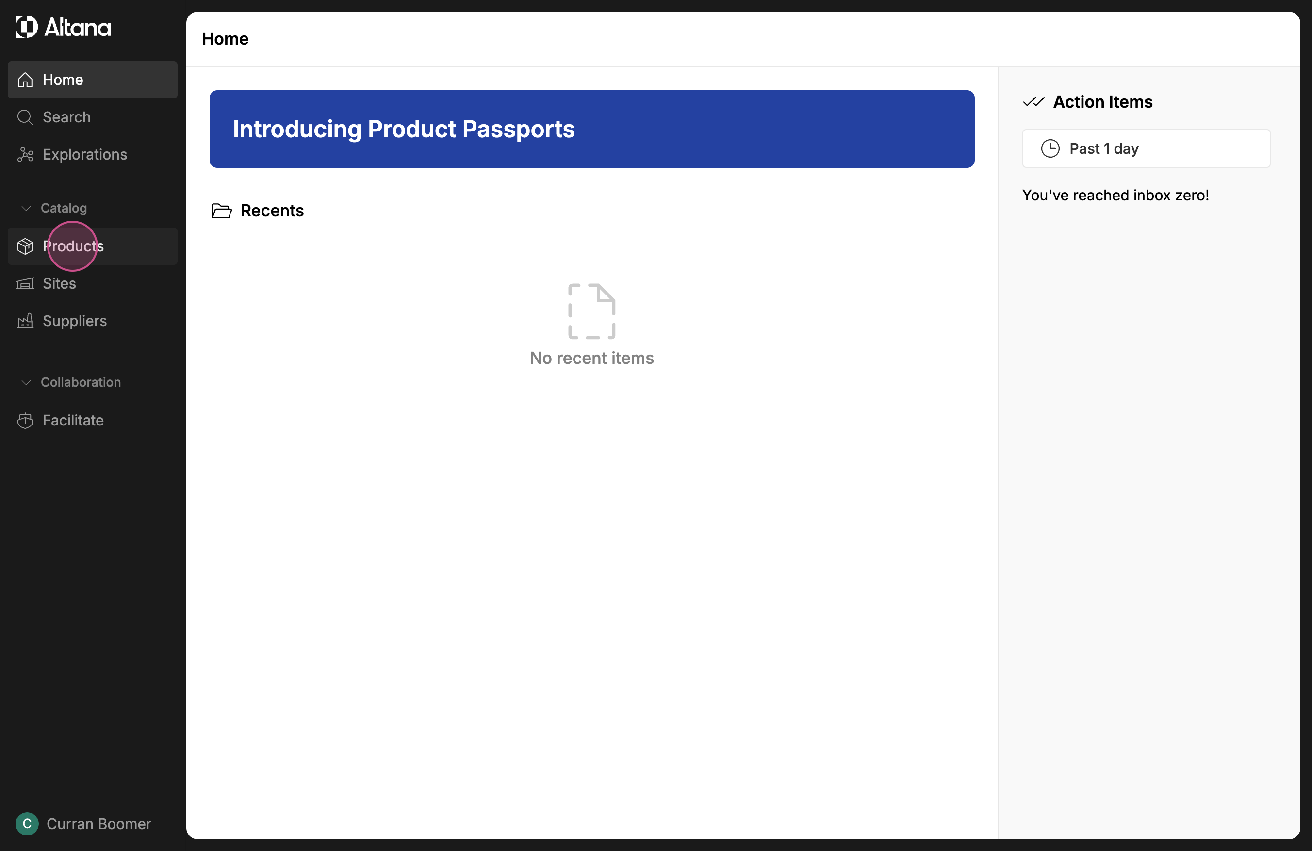 Step 1: From the Altana home screen, select Products on the left-hand menu.