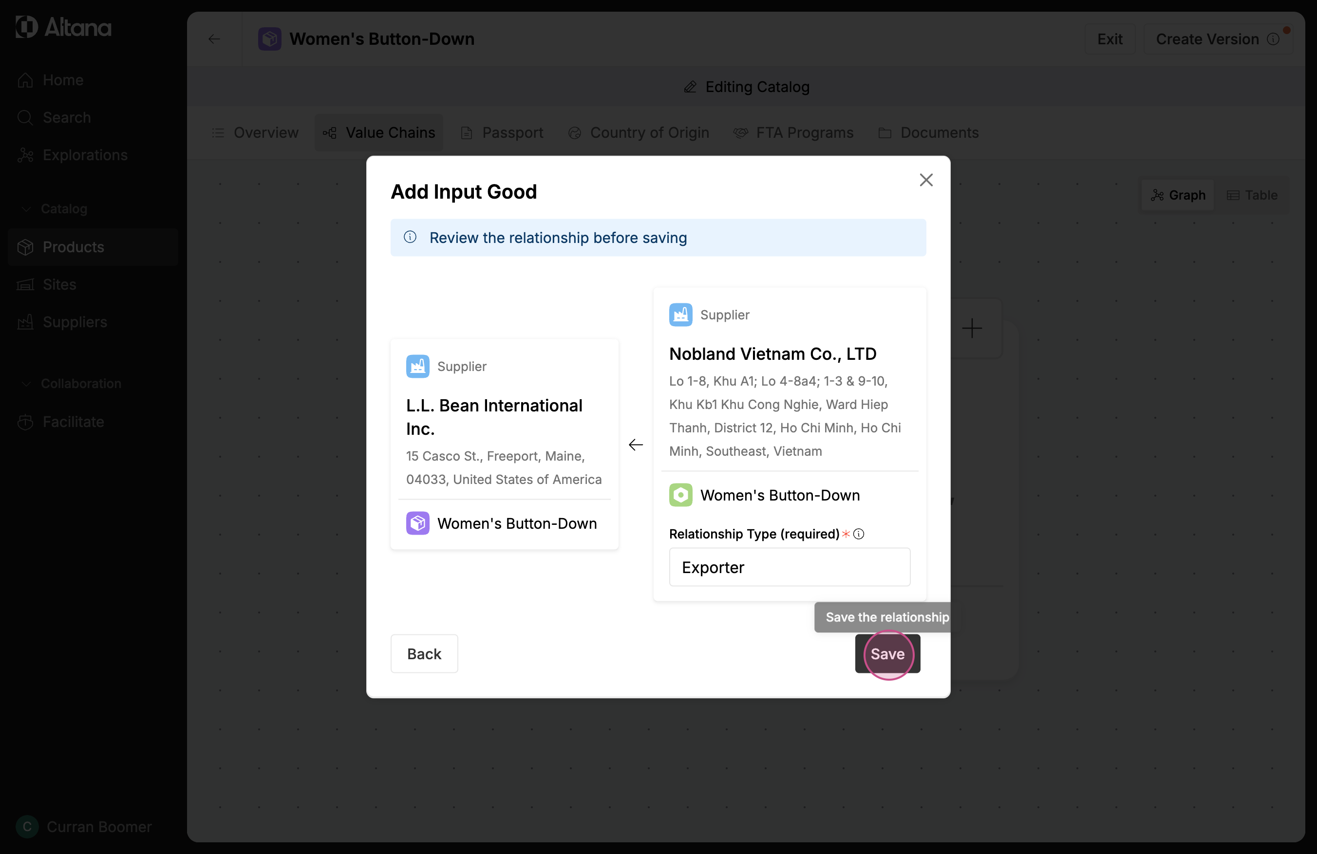 In this tutorial, you'll learn how to add products to your catalog in Altana and build a detailed product value chain.