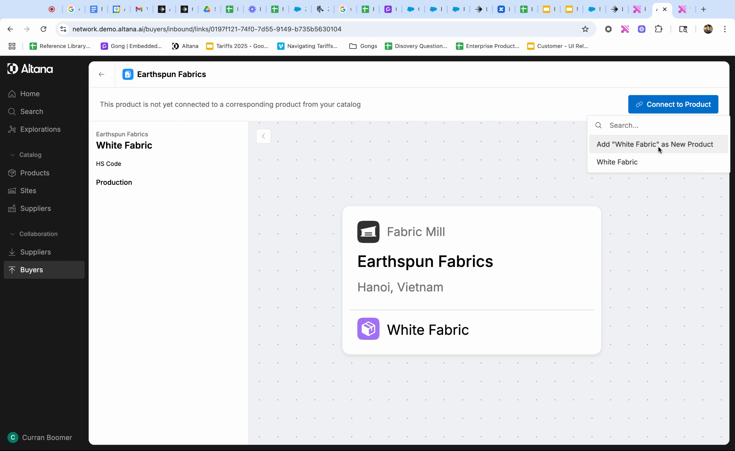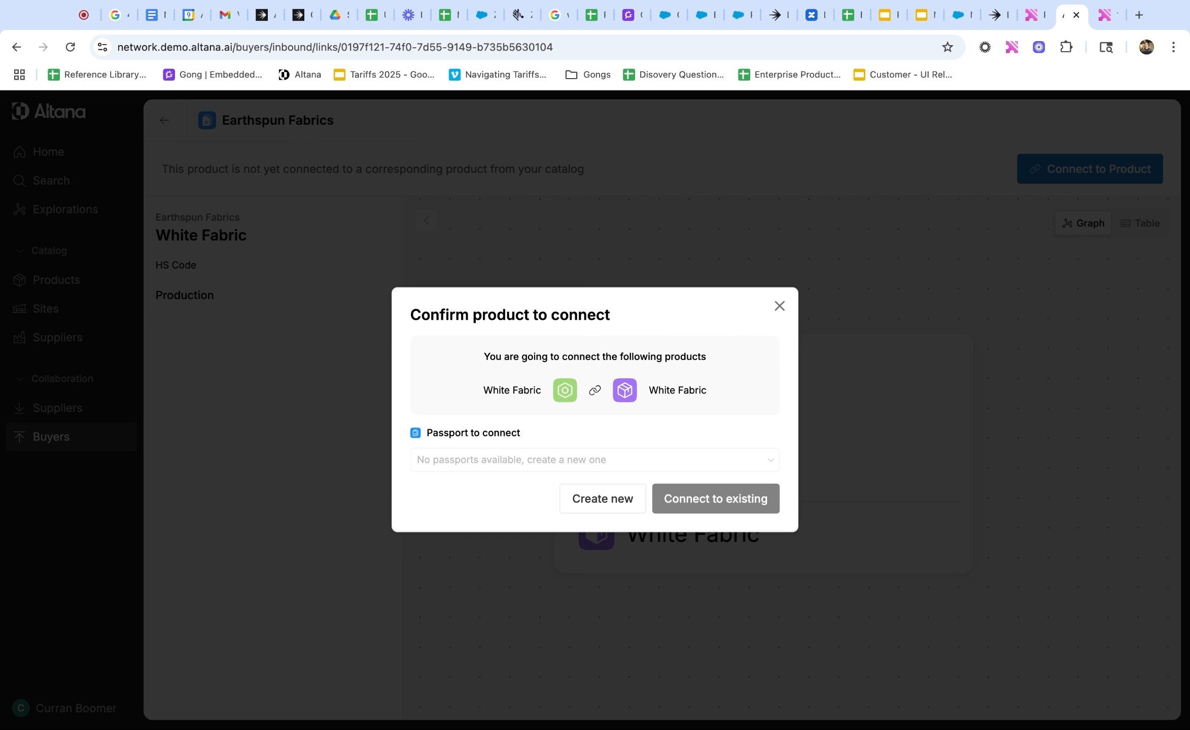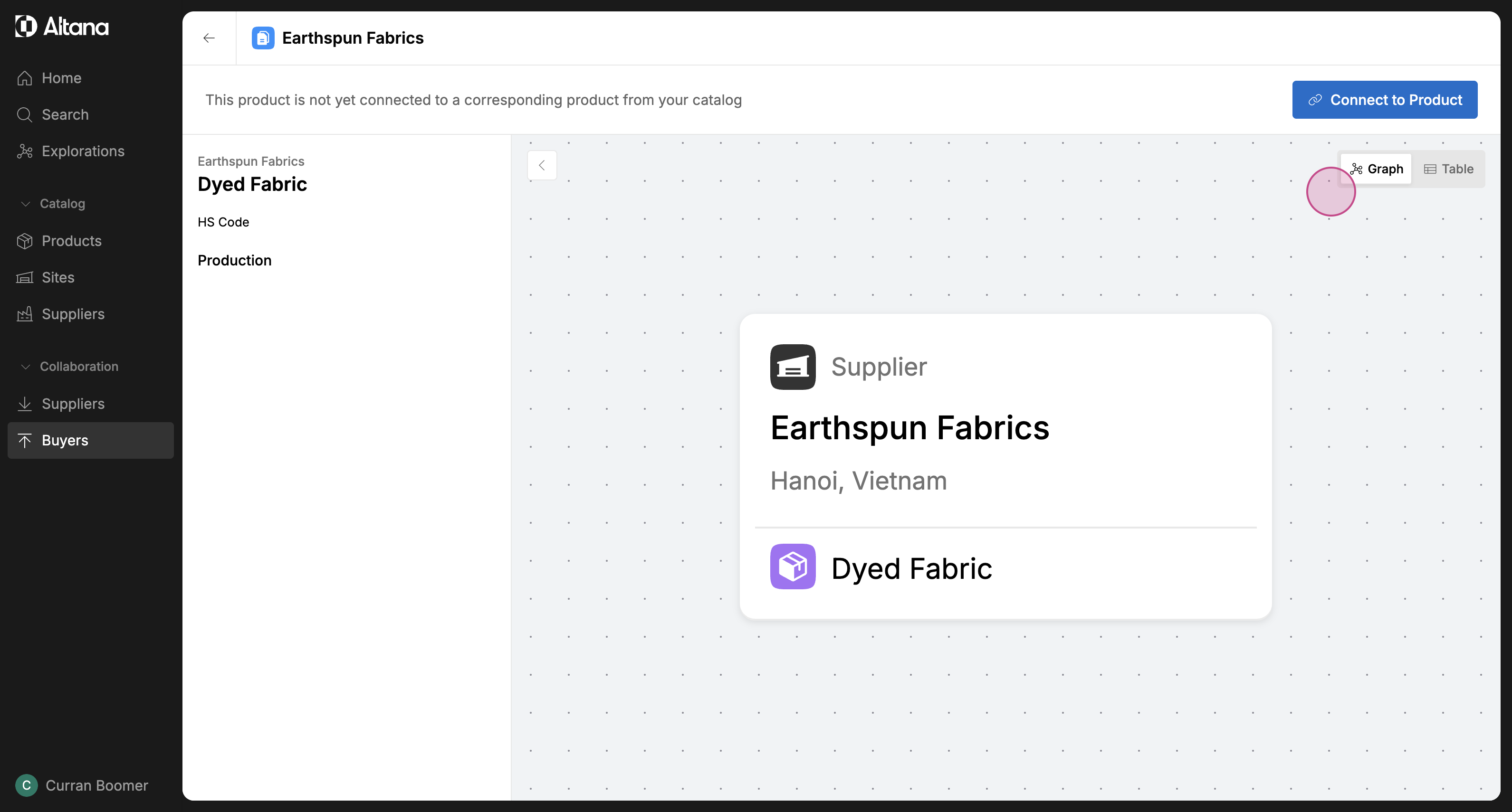 Step 5: To start collaborating, connect this product passport to a product in your catalog by clicking on Connect to Product. You can either link this product to an existing product in your catalog, or add a new product if it doesn't yet exist in your catalog.