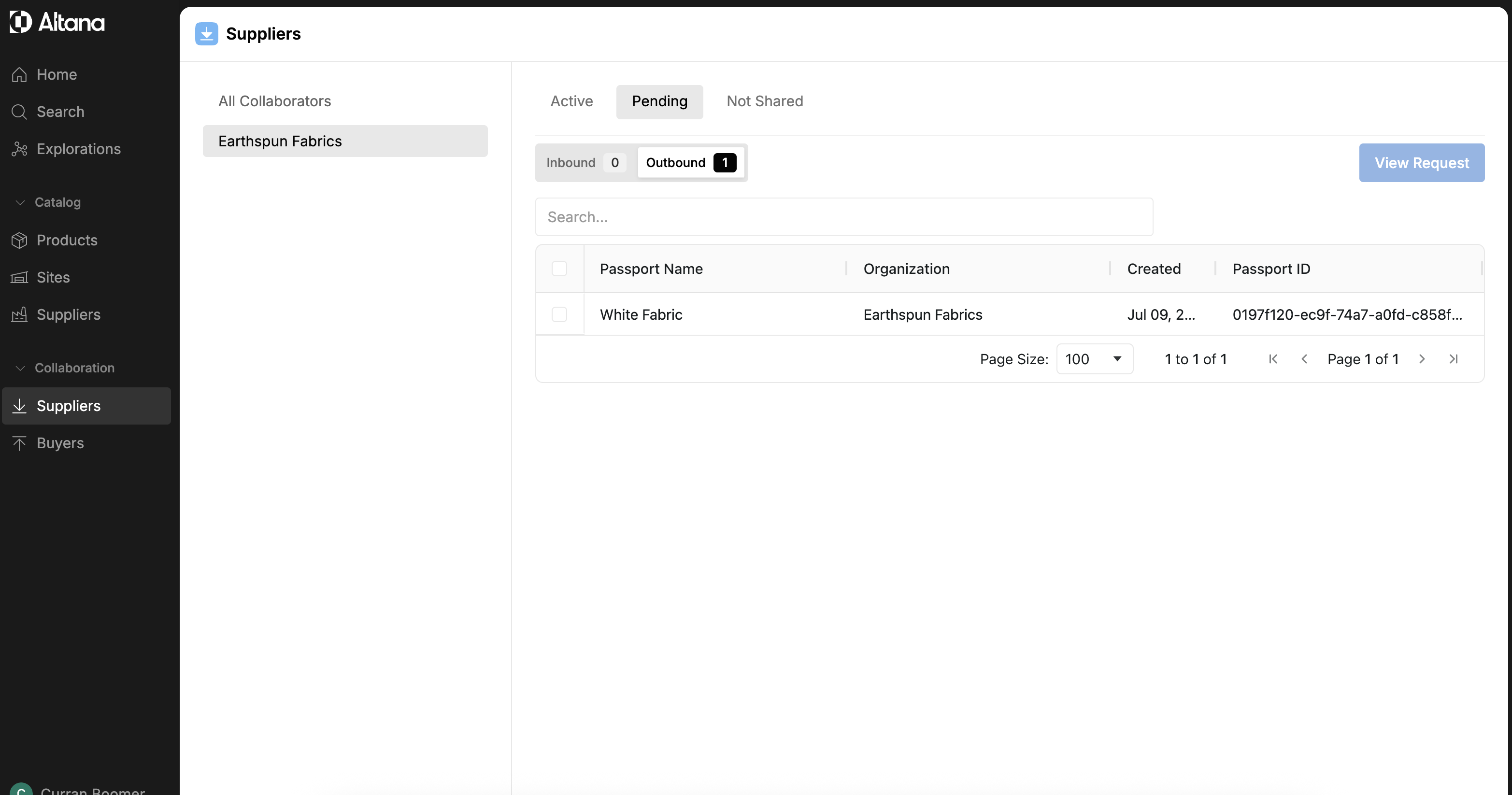 Step 9: A request is now sent to your supplier inviting them to collaborate. You can now find this passport in the Pending tab under Outbound.