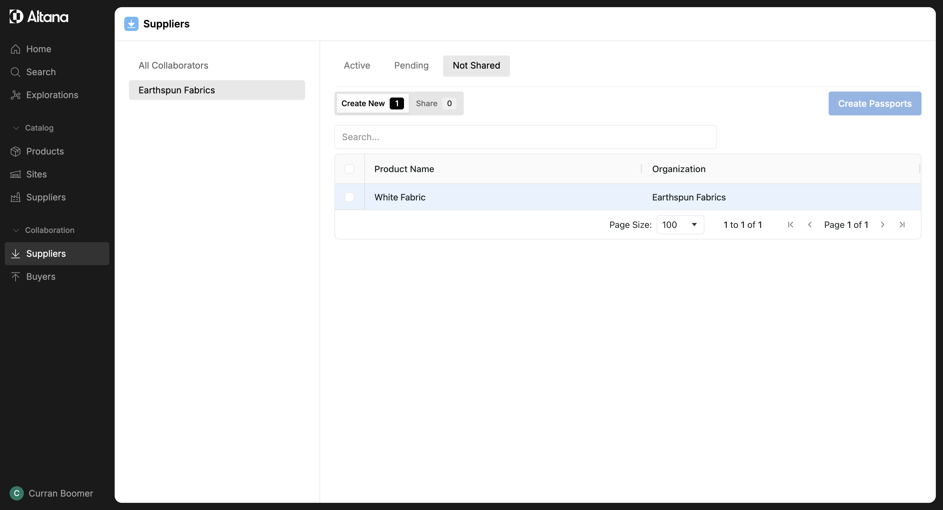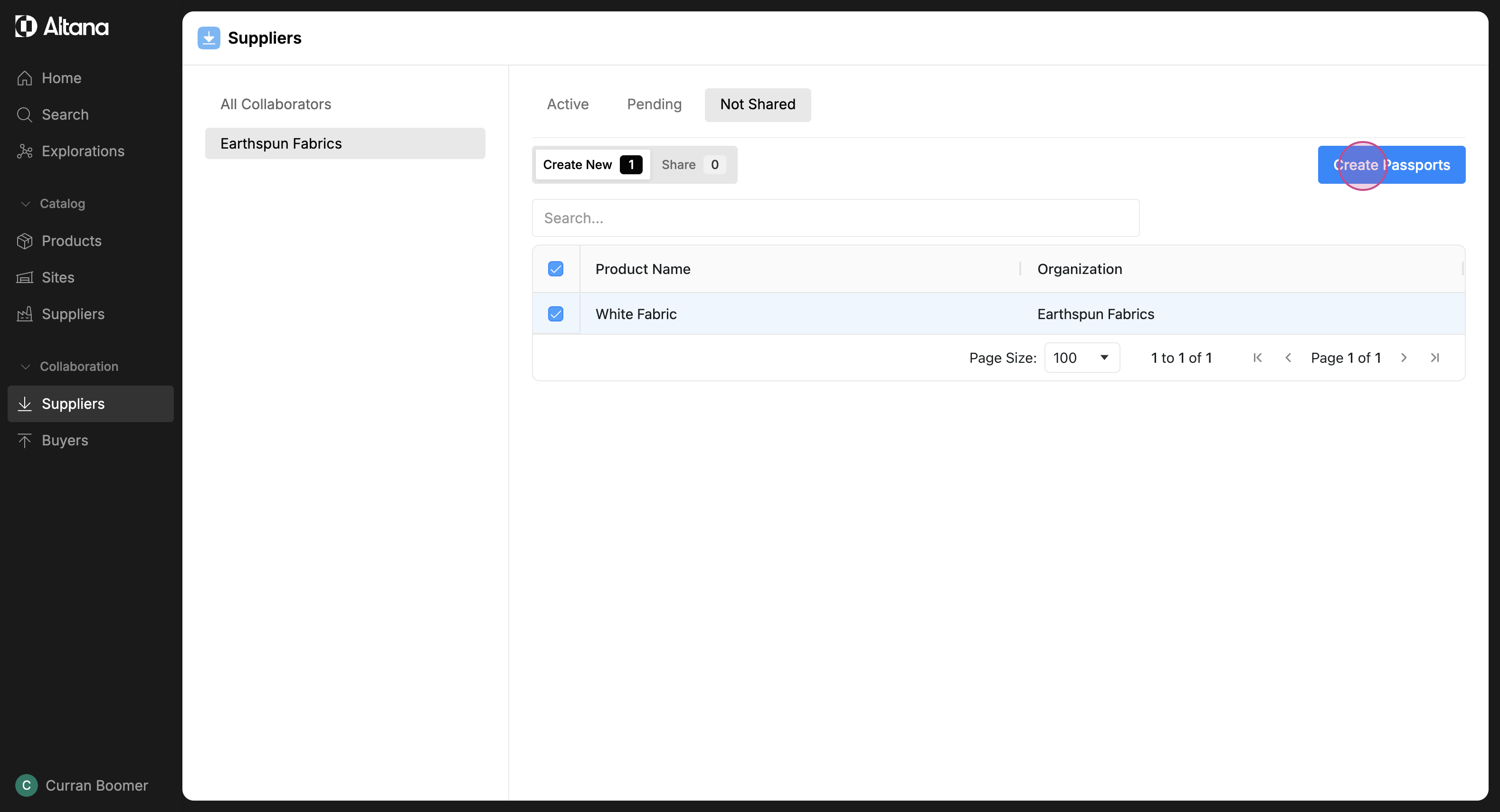 Step 6: This tab displays all the products for which you haven't created a passport. To collaborate with other businesses, you need to create a passport. Select the product and then click on Create Passport.