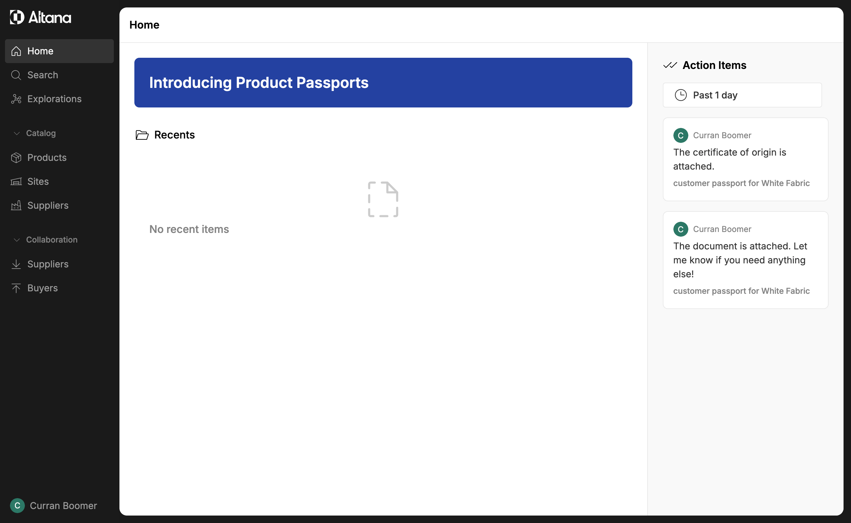 Step 8: When your supplier responds, you'll get a notification on the Altana homepage. Click on this notification to go directly to the passport where you asked the question.