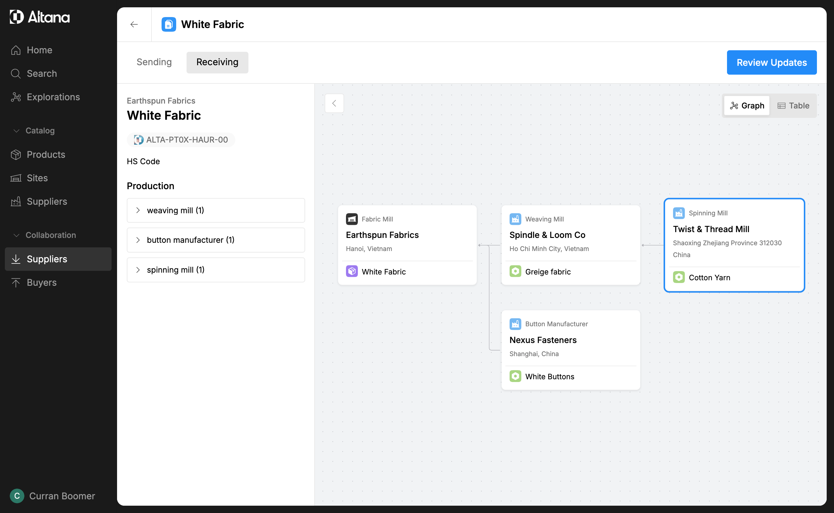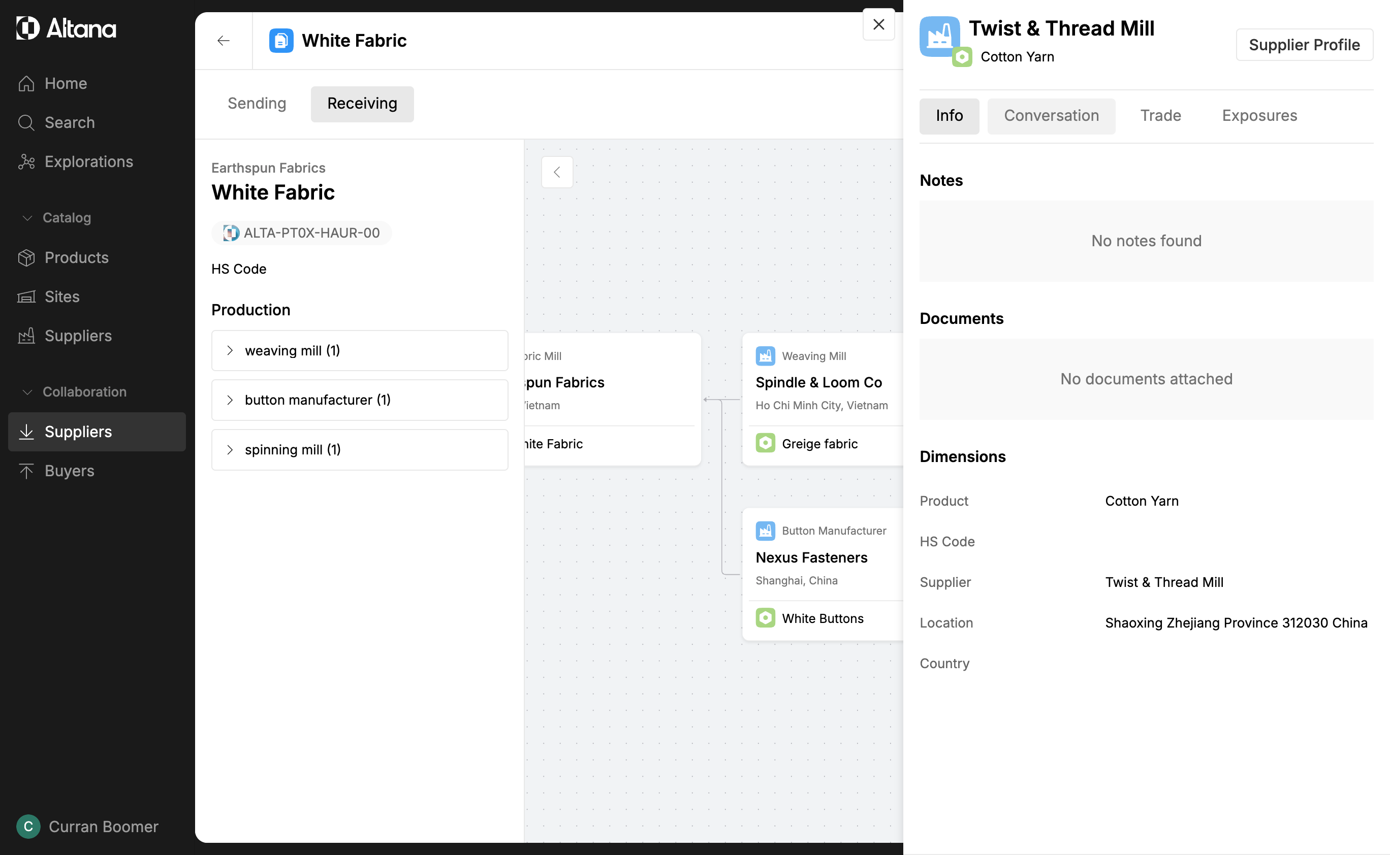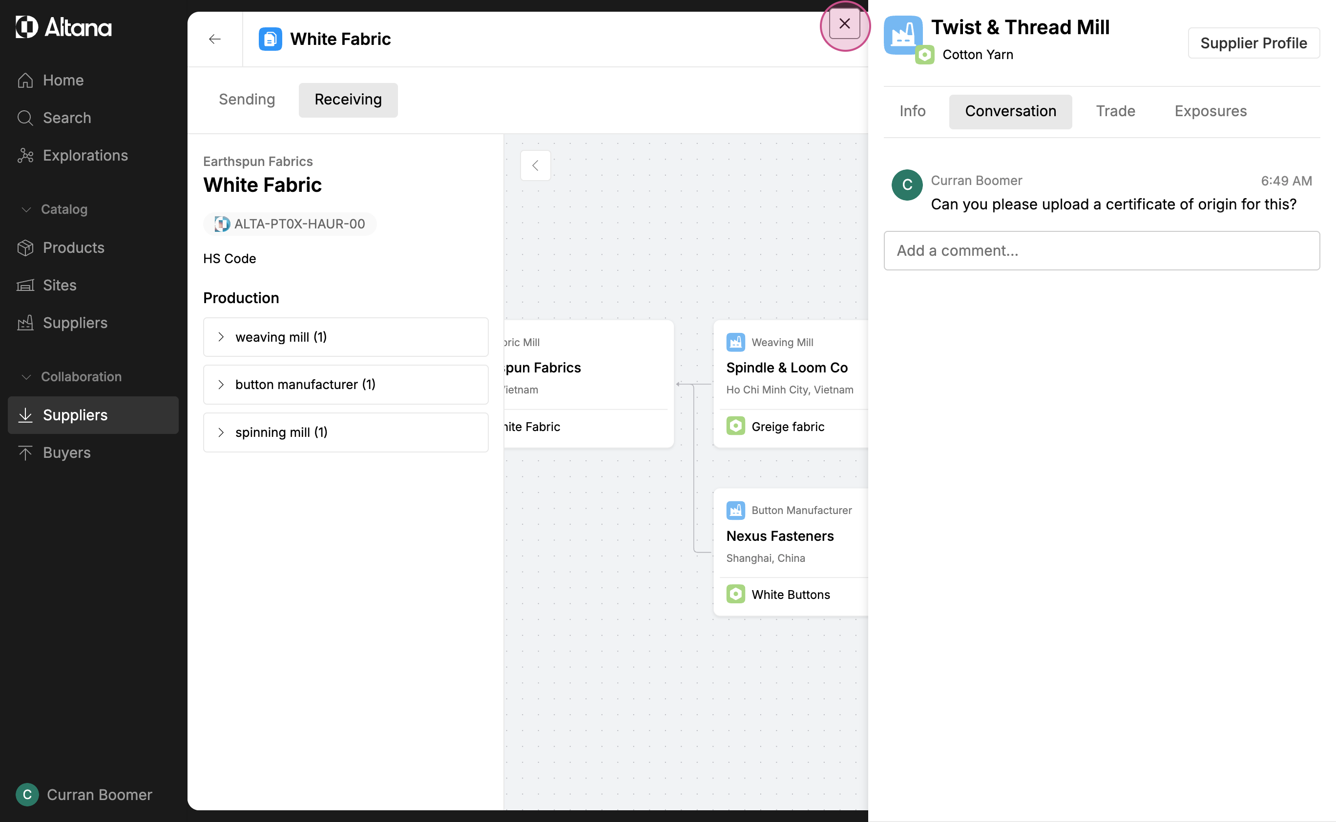 Step 5: If you have a question about an upstream supplier, click on the entity in the value chain. This will reveal more information about that specific upstream supplier.