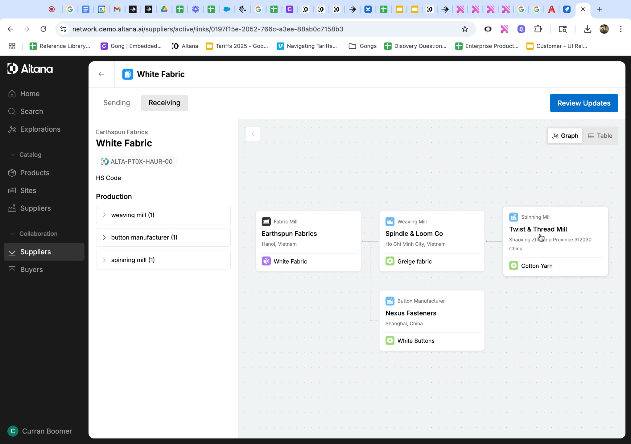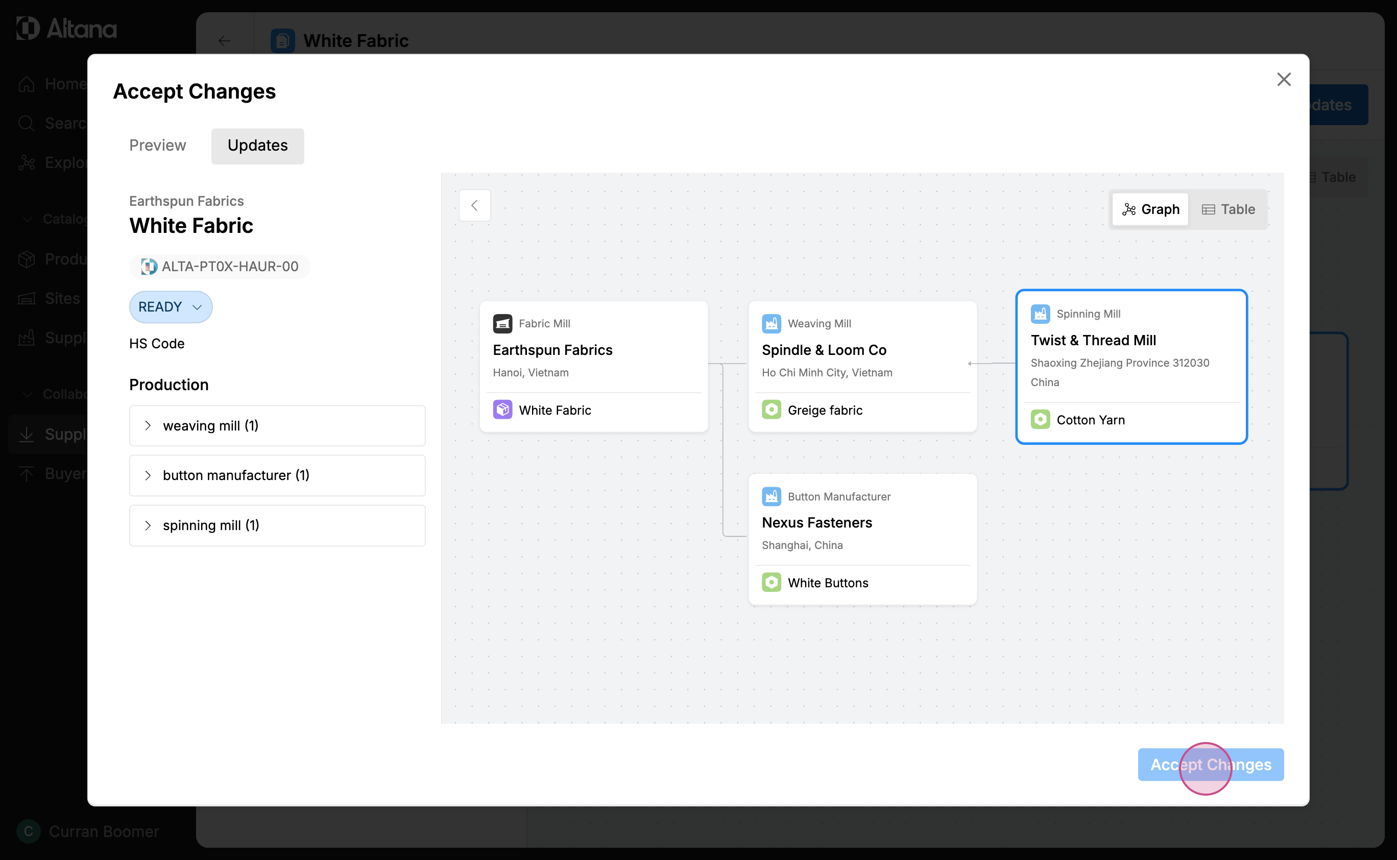 Step 11: Currently, the document only exists within the product passport. To incorporate the document into your product catalog, select Review Updates. If everything is correct, accept the changes into your catalog. The document will now be stored inside the value chain of your own product catalog.