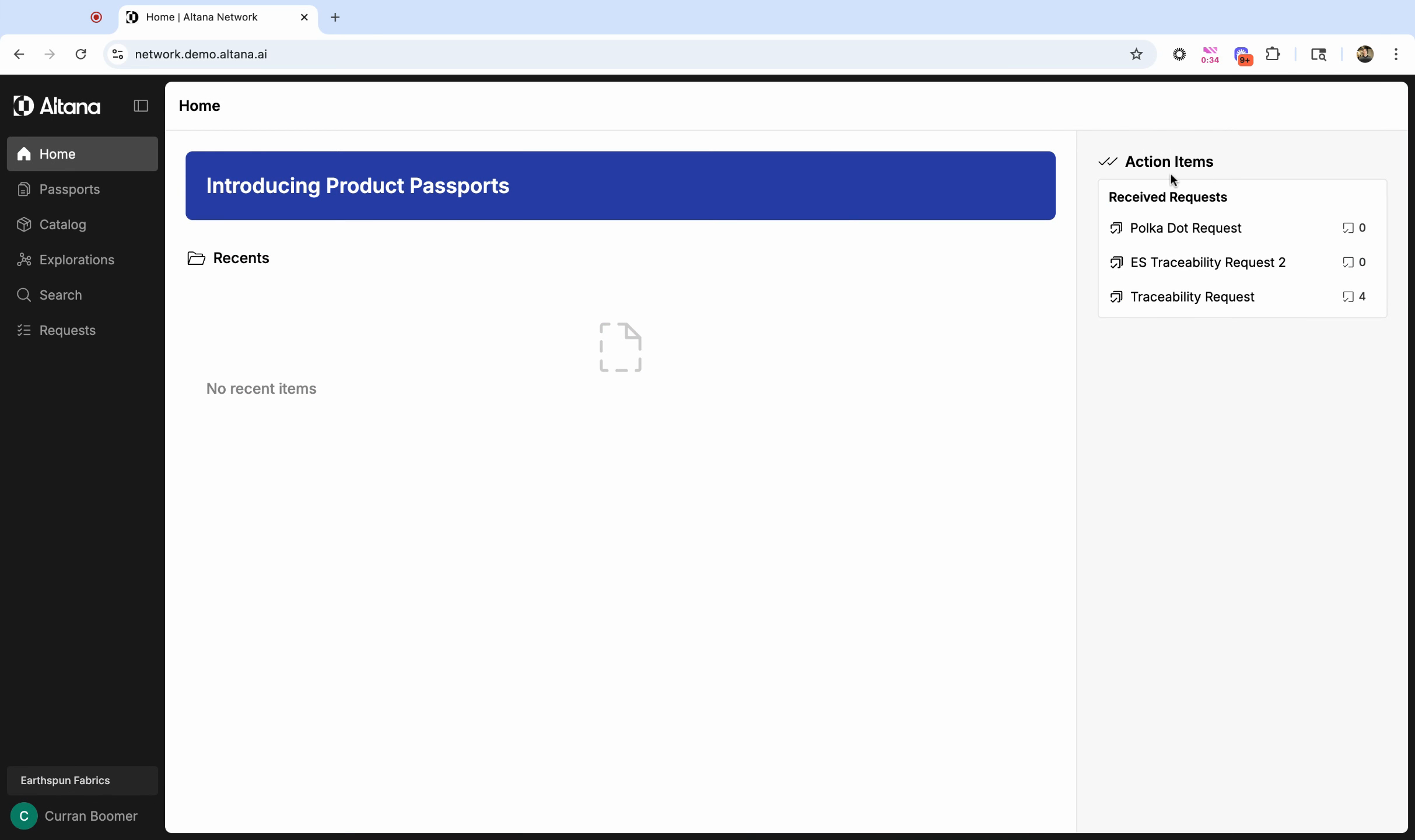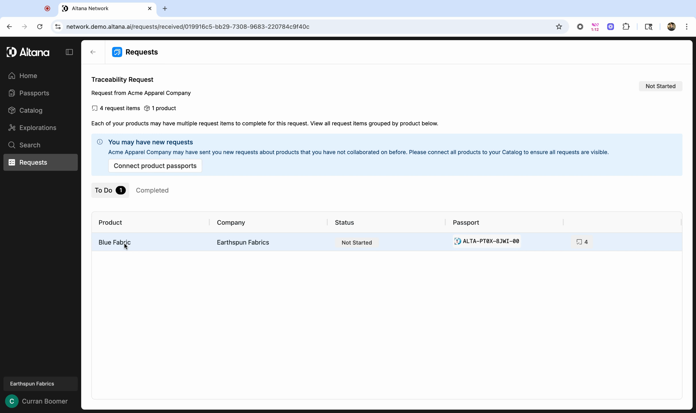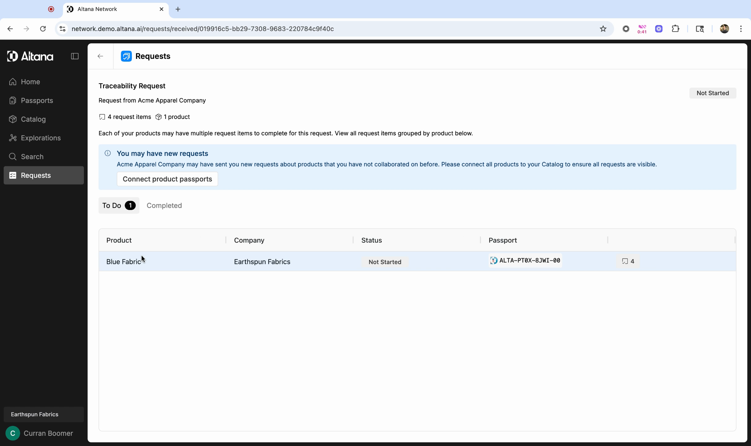 Step 4: Inside the passport, find the Requests section on the left-hand side. This is where you'll find the traceability request from your buyer.