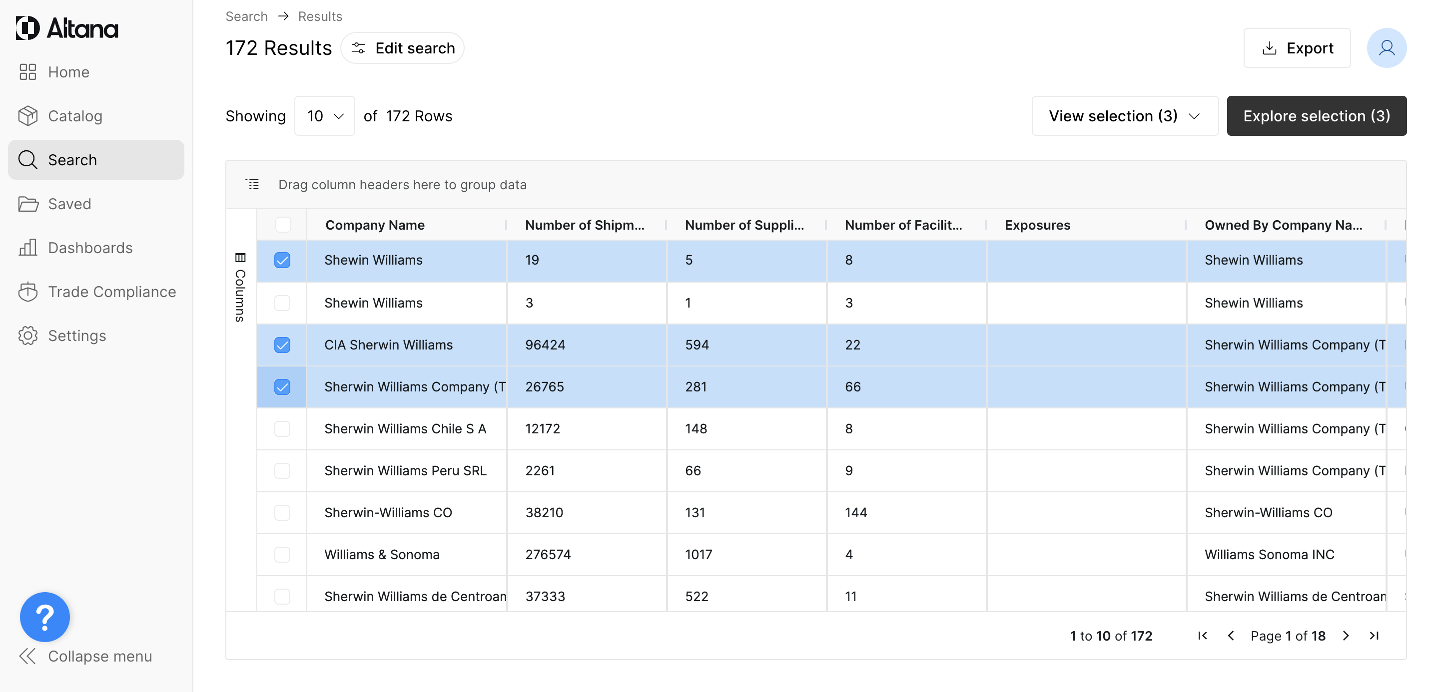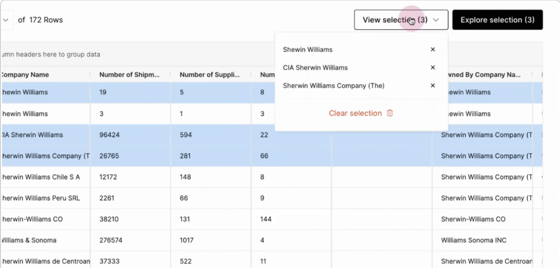When you're finished selecting the Search entities, click Explore selection to launch your Exploration.
