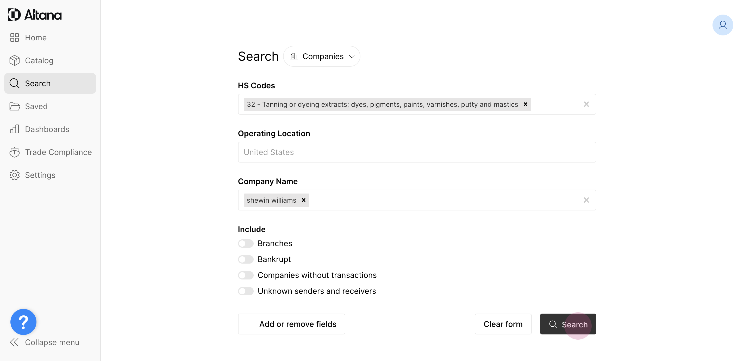 Once you set the initial parameters and click Search, you'll be redirected to the Search Results page.