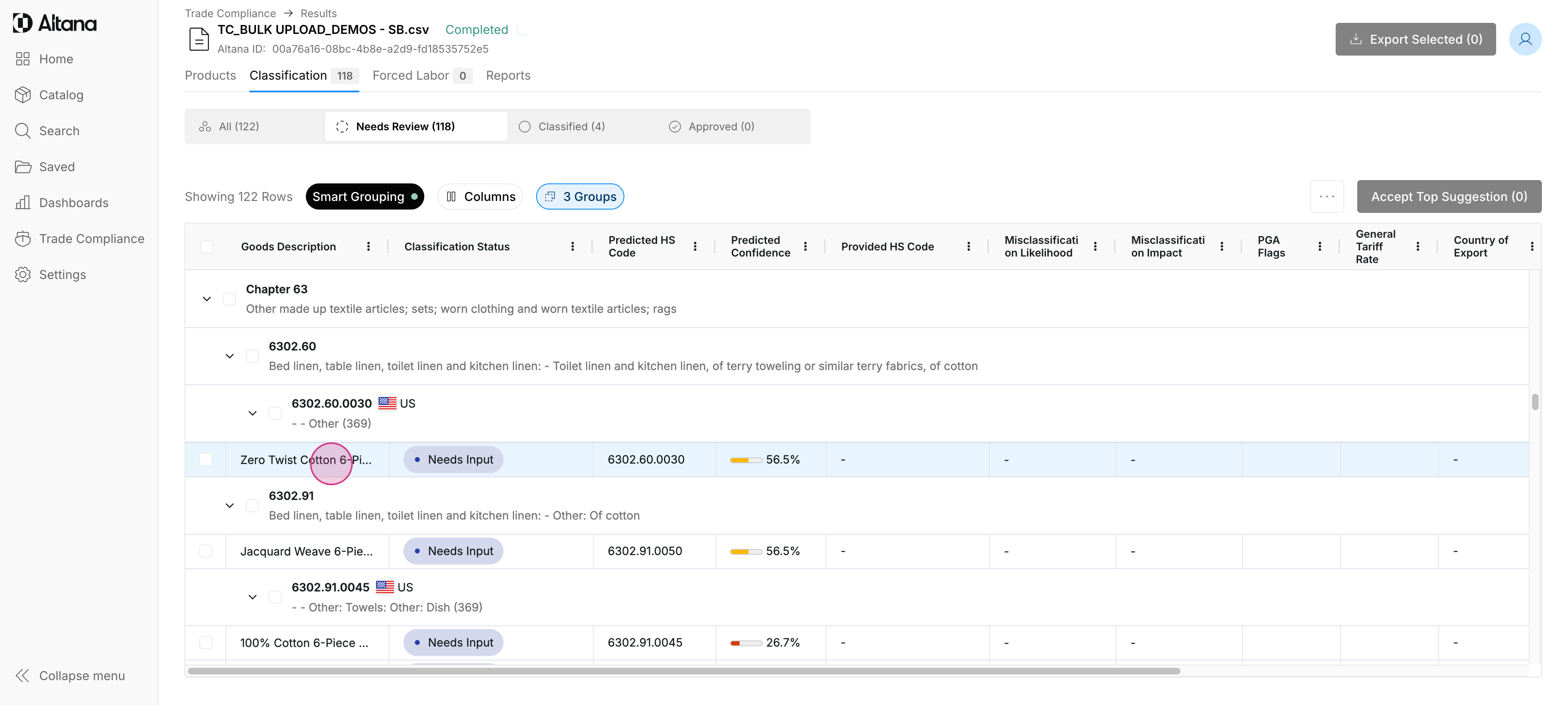 Step 2: Altana's model will analyze the relevant custom fields and use the provided information to return the most accurate predicted HS codes.