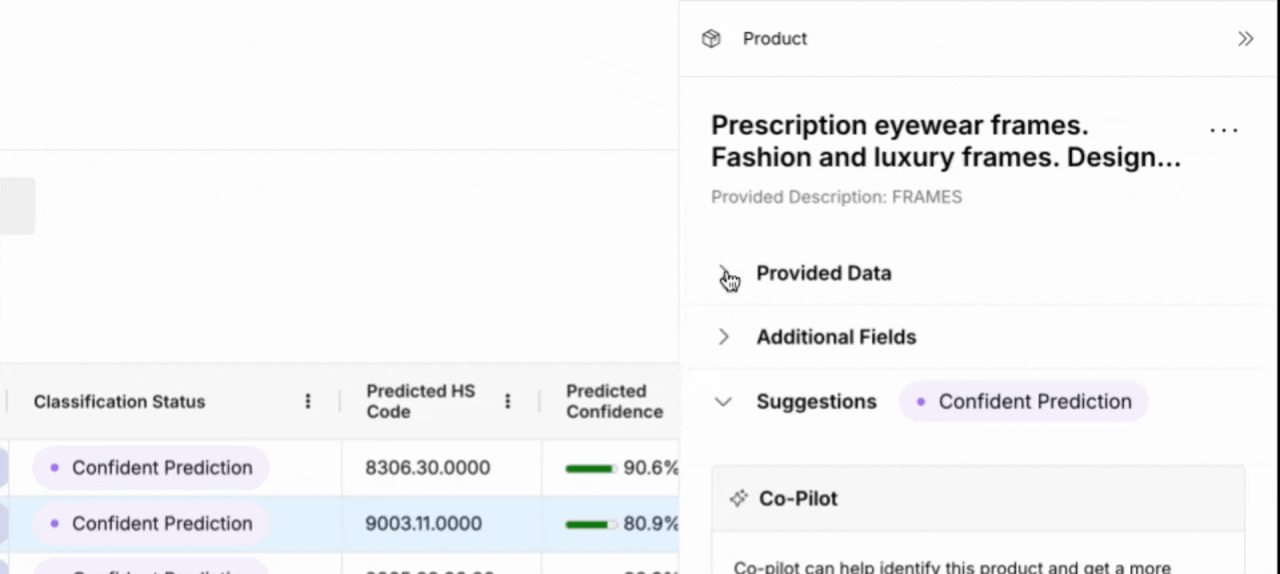 Step 5: Once you have enhanced a goods description, Altana will automatically re-classify the product based on the updated information. You can always refer back to the original provided goods description by clicking on the product and clicking Provided Data.