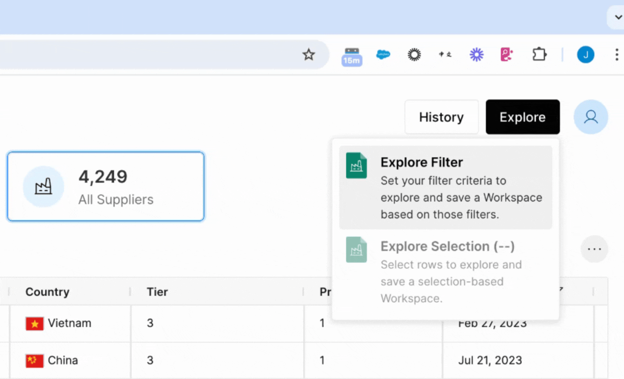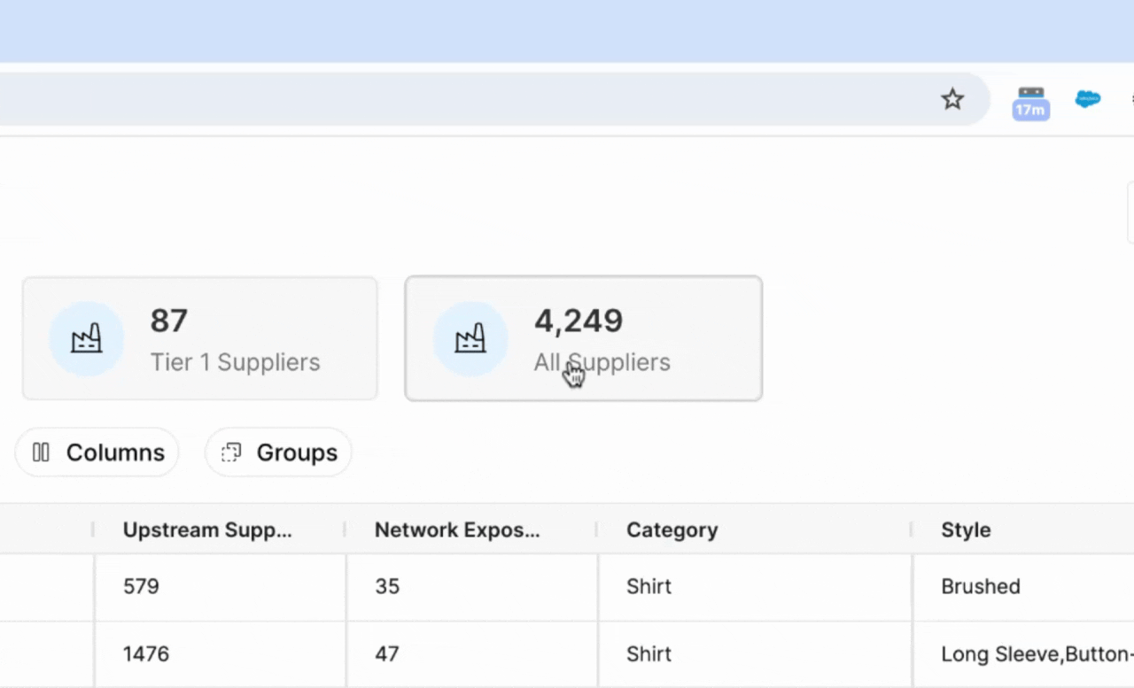 Step 1: Navigate to the all suppliers page, which lists all suppliers in the value chain.