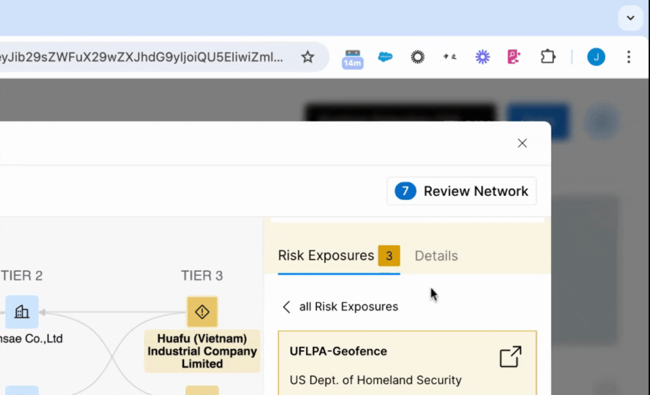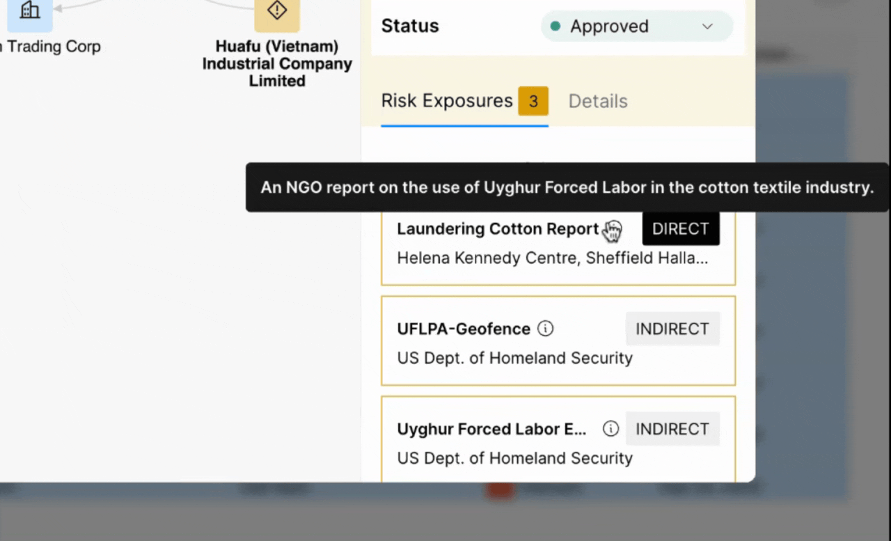 Step 2: Review the supplier's exposures for different products. Expand the selection to understand more about how the risk relates to the finished good.