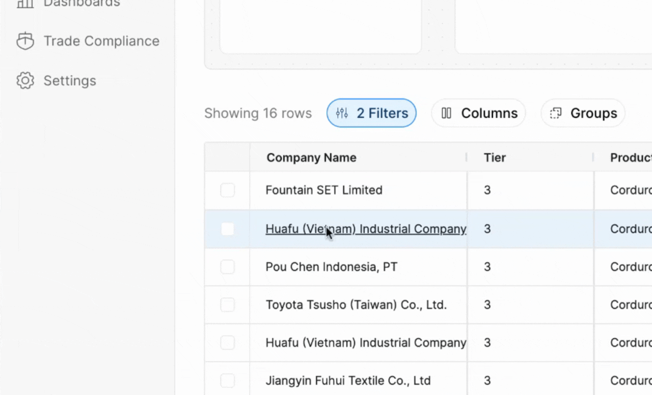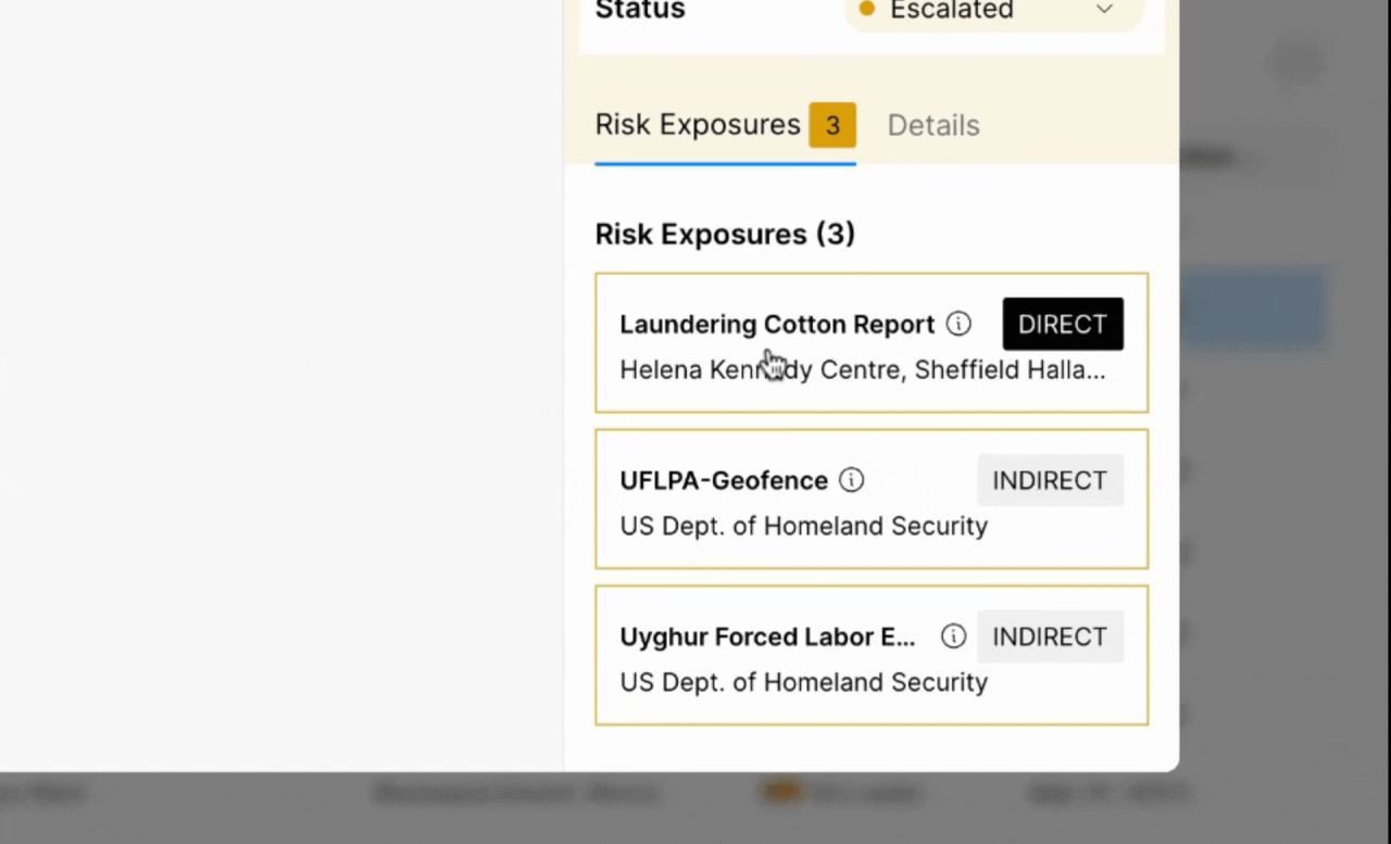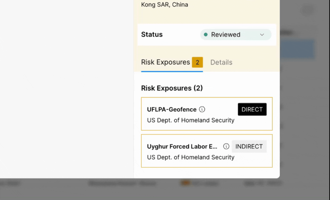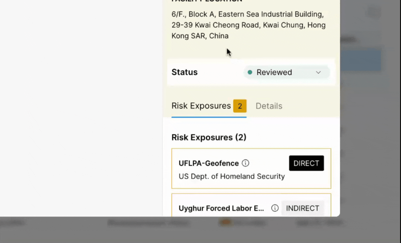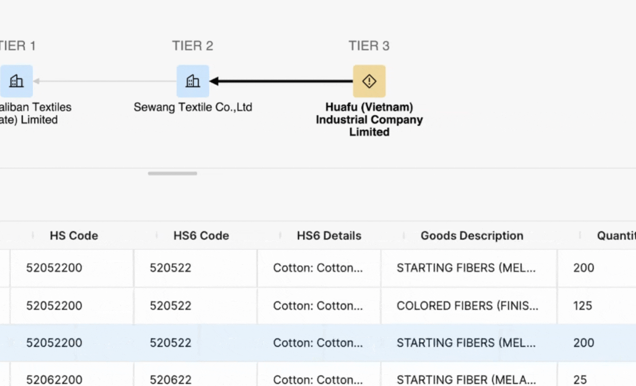 Step 3: Determine the risk level based on the information available. For example, if the company is owned by a holding company that operates a textile company located in a risky region, mark it as a high risk. Analyze the shipment transactions to determine whether risky facility is sending relevant goods to your finished product.