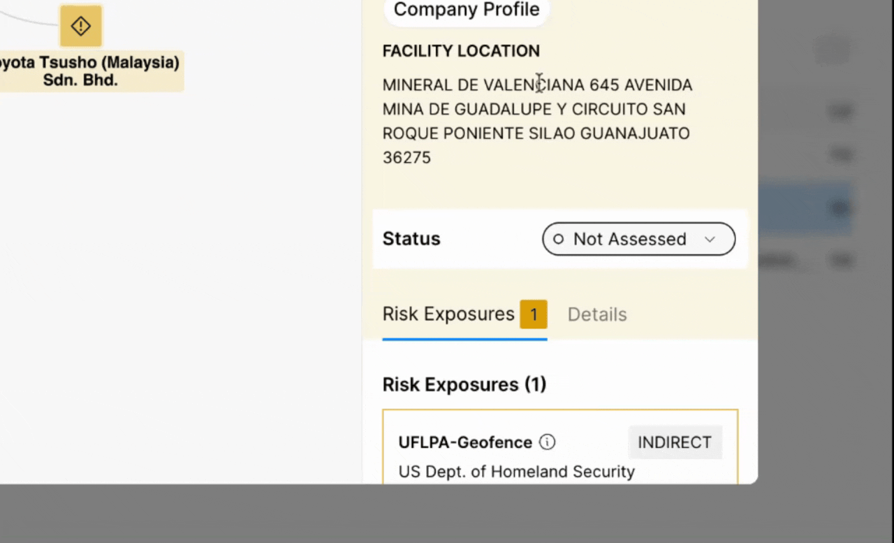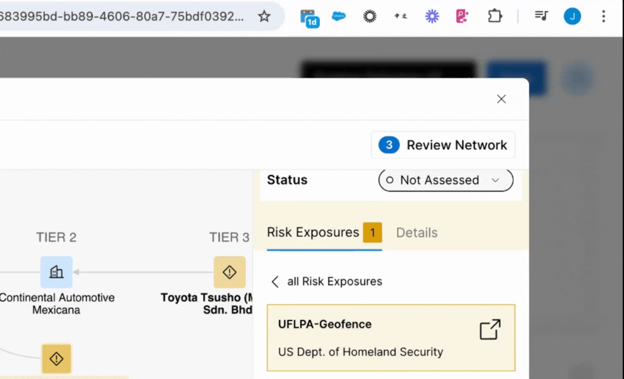 Step 3: Analyze the risk exposure. In this instance, it's an indirect connection via the UFLPA geofence. The risk chain is exposed by two degrees of separation.