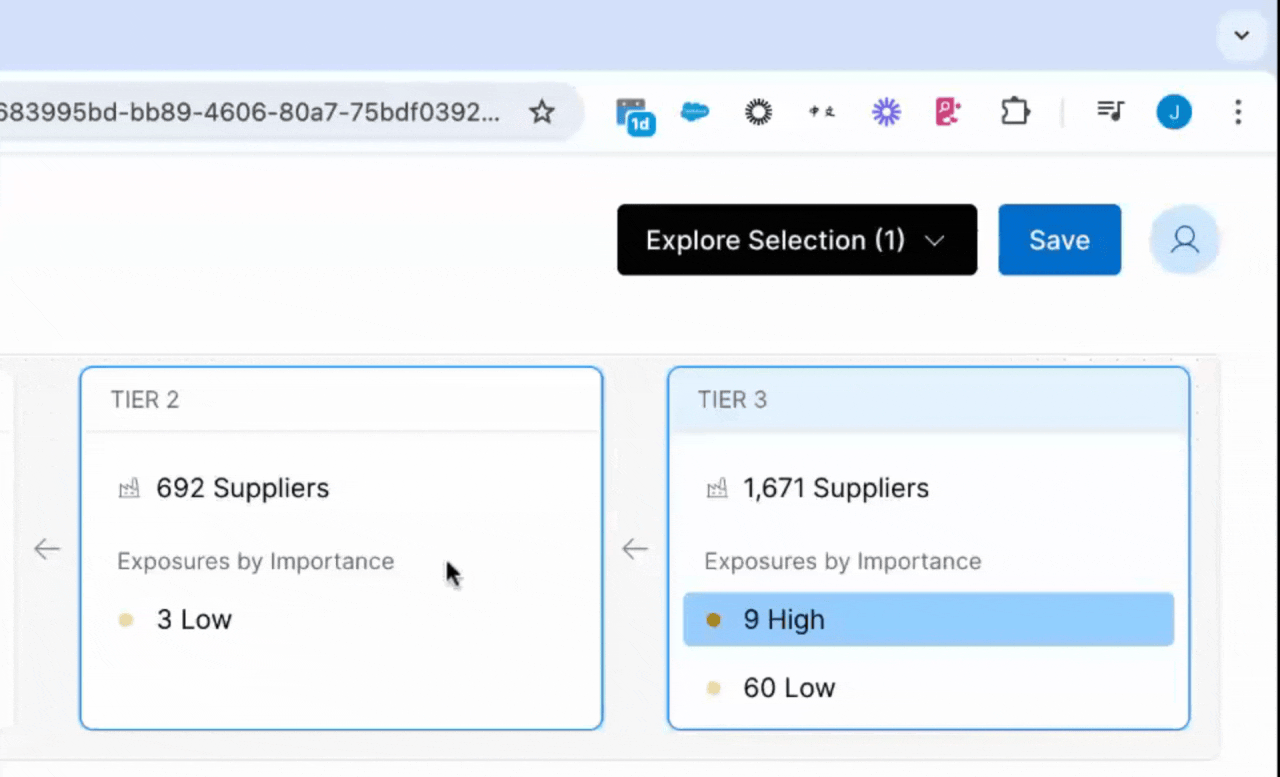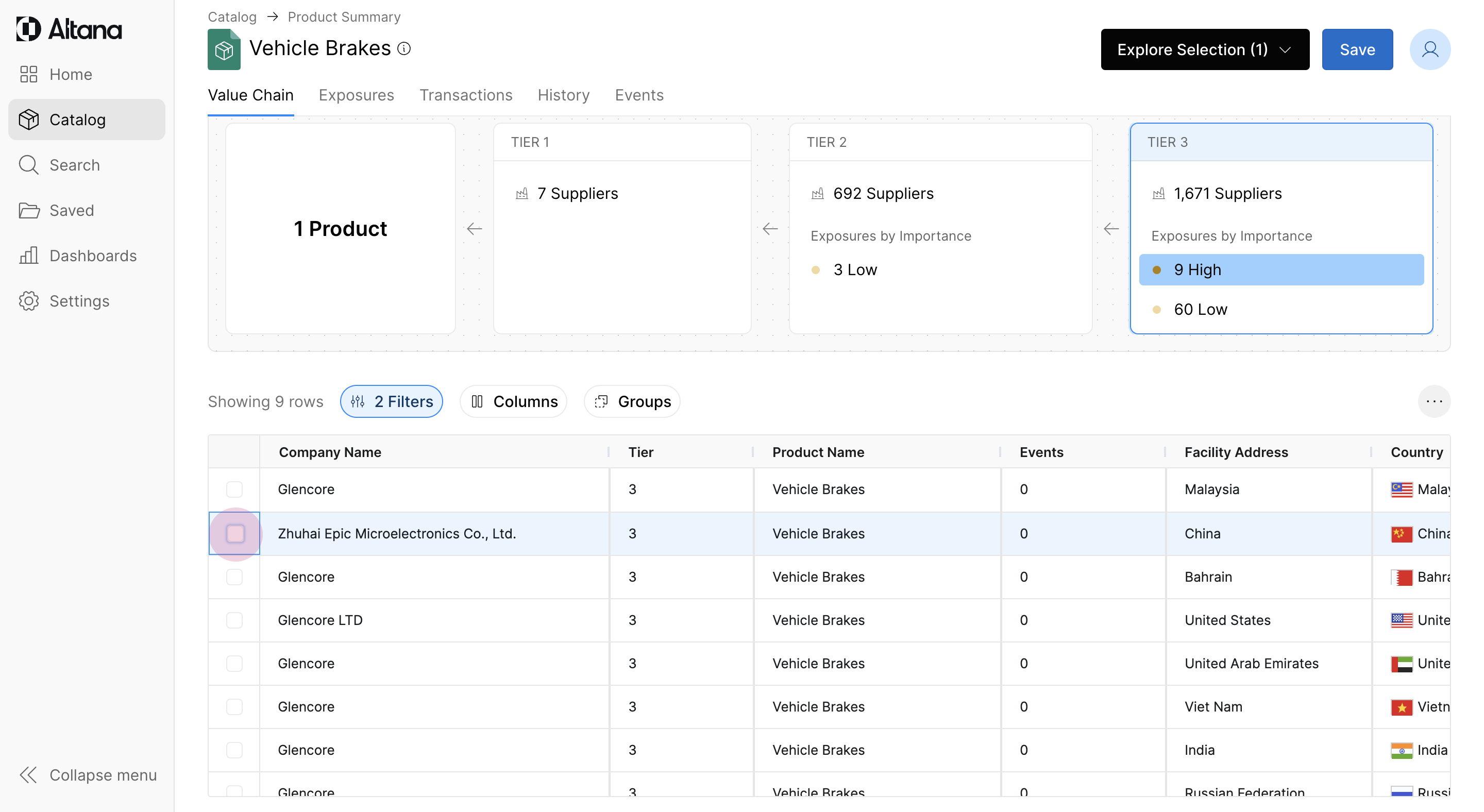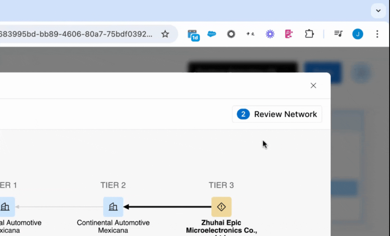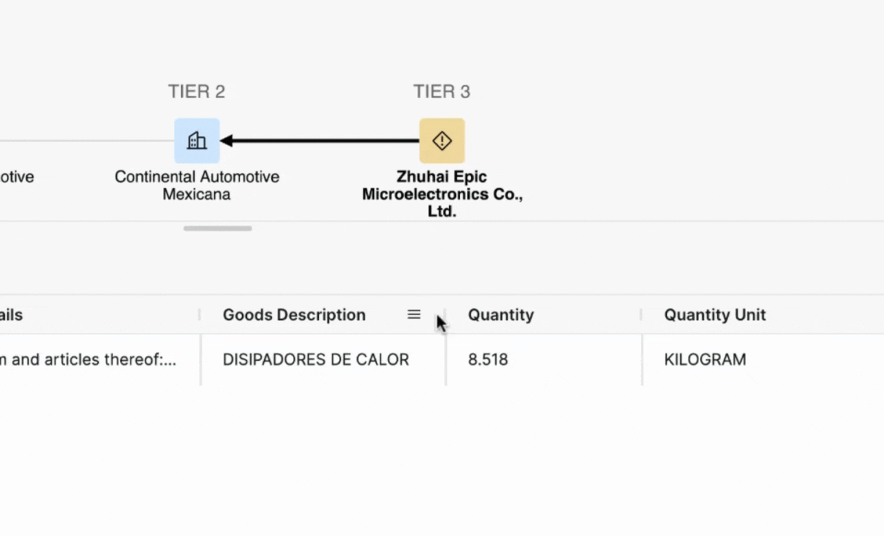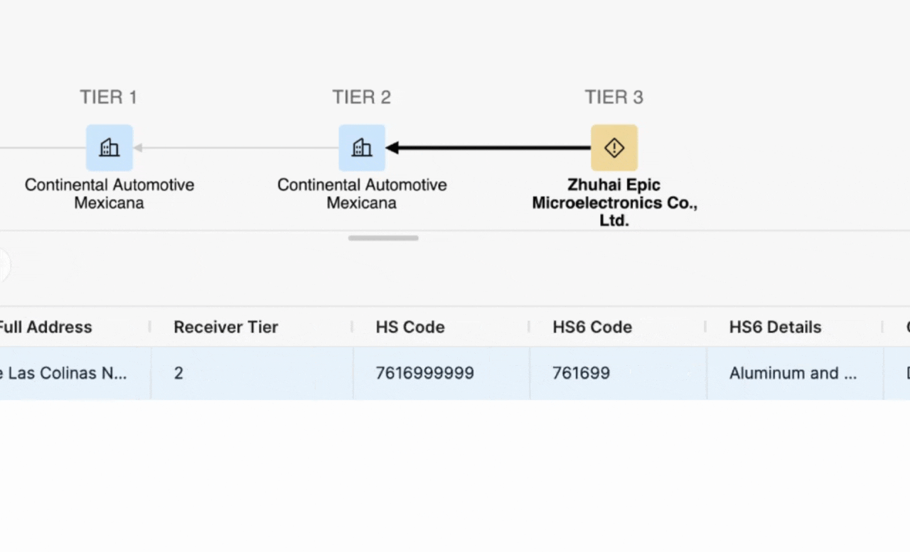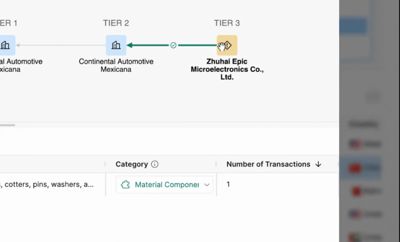 Step 1: Identify a higher priority risk, this time upstream within the third tier. The supplier in this case is Zhuhai Epic Microelectronics.